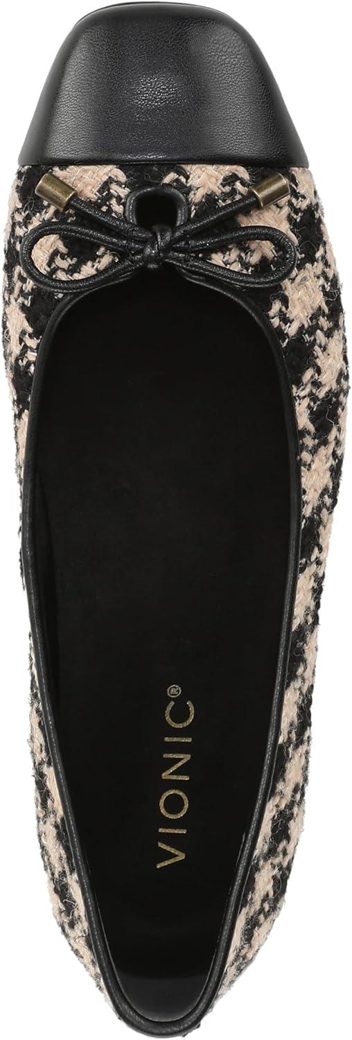 A contemporary ballet silhouette makes Klara a top choice for classic daily wear with its modern square toe, bow detail, and removable supportive orthotic. Designed with exclusive alignment technology to balance the whole you. Premium upper materials. Durable synthetic outsole designed to withstand everyday wear. Removable lightweight EVA insert. Built-in VIO MOTION Technology footbed featuring contoured arch support, with shock-absorbing cushioning, deep heel cup to provide stability, and forefoot flexibility. Vionic flats include full underfoot contact to reduce pressure with every step. Helps alleviate heel pain caused by plantar fasciitis or achilles tendonitis. It's recommended to wear your new pair for a few hours to allow your feet to adapt to the new support. .75 inch(es) heel height. Imported.