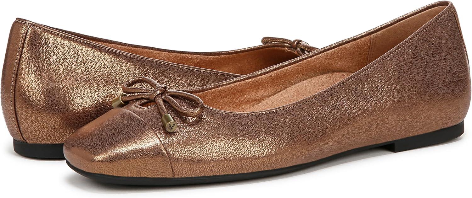 A contemporary ballet silhouette makes Klara a top choice for classic daily wear with its modern square toe, bow detail, and removable supportive orthotic. Designed with exclusive alignment technology to balance the whole you. Premium upper materials. Durable synthetic outsole designed to withstand everyday wear. Removable lightweight EVA insert. Built-in VIO MOTION Technology footbed featuring contoured arch support, with shock-absorbing cushioning, deep heel cup to provide stability, and forefoot flexibility. Vionic flats include full underfoot contact to reduce pressure with every step. Helps alleviate heel pain caused by plantar fasciitis or achilles tendonitis. It's recommended to wear your new pair for a few hours to allow your feet to adapt to the new support. .75 inch(es) heel height. Imported.
