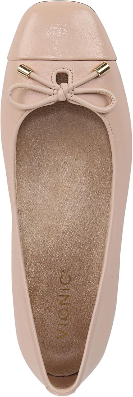 A contemporary ballet silhouette makes Klara a top choice for classic daily wear with its modern square toe, bow detail, and removable supportive orthotic. Designed with exclusive alignment technology to balance the whole you. Premium upper materials. Durable synthetic outsole designed to withstand everyday wear. Removable lightweight EVA insert. Built-in VIO MOTION Technology footbed featuring contoured arch support, with shock-absorbing cushioning, deep heel cup to provide stability, and forefoot flexibility. Vionic flats include full underfoot contact to reduce pressure with every step. Helps alleviate heel pain caused by plantar fasciitis or achilles tendonitis. It's recommended to wear your new pair for a few hours to allow your feet to adapt to the new support. .75 inch(es) heel height. Imported.