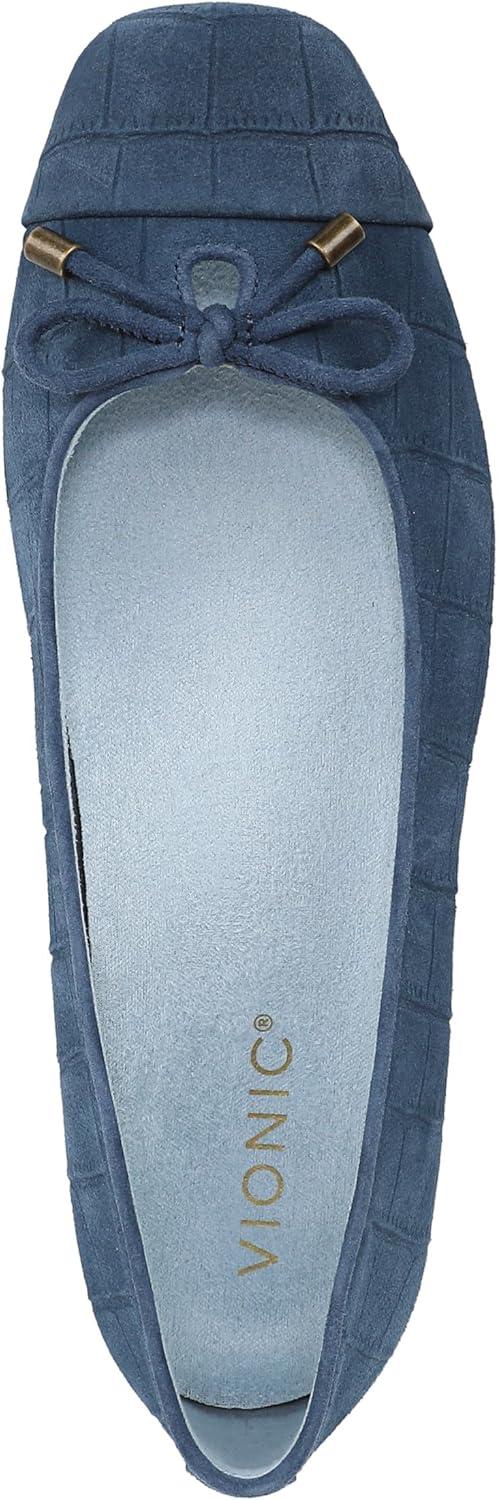 A contemporary ballet silhouette makes Klara a top choice for classic daily wear with its modern square toe, bow detail, and removable supportive orthotic. Designed with exclusive alignment technology to balance the whole you. Premium upper materials. Durable synthetic outsole designed to withstand everyday wear. Removable lightweight EVA insert. Built-in VIO MOTION Technology footbed featuring contoured arch support, with shock-absorbing cushioning, deep heel cup to provide stability, and forefoot flexibility. Vionic flats include full underfoot contact to reduce pressure with every step. Helps alleviate heel pain caused by plantar fasciitis or achilles tendonitis. It's recommended to wear your new pair for a few hours to allow your feet to adapt to the new support. .75 inch(es) heel height. Imported.