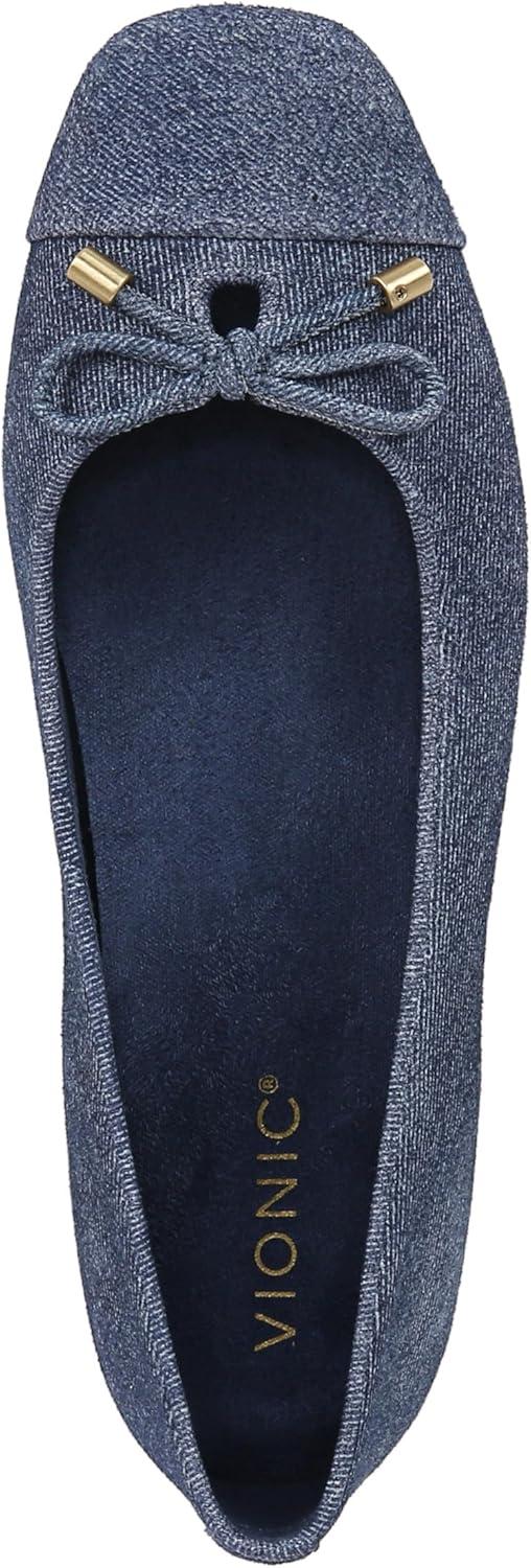 A contemporary ballet silhouette makes Klara a top choice for classic daily wear with its modern square toe, bow detail, and removable supportive orthotic. Designed with exclusive alignment technology to balance the whole you. Premium upper materials. Durable synthetic outsole designed to withstand everyday wear. Removable lightweight EVA insert. Built-in VIO MOTION Technology footbed featuring contoured arch support, with shock-absorbing cushioning, deep heel cup to provide stability, and forefoot flexibility. Vionic flats include full underfoot contact to reduce pressure with every step. Helps alleviate heel pain caused by plantar fasciitis or achilles tendonitis. It's recommended to wear your new pair for a few hours to allow your feet to adapt to the new support. .75 inch(es) heel height. Imported.