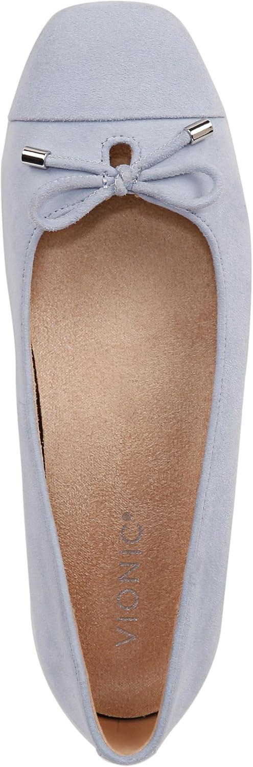 A contemporary ballet silhouette makes Klara a top choice for classic daily wear with its modern square toe, bow detail, and removable supportive orthotic. Designed with exclusive alignment technology to balance the whole you. Premium upper materials. Durable synthetic outsole designed to withstand everyday wear. Removable lightweight EVA insert. Built-in VIO MOTION Technology footbed featuring contoured arch support, with shock-absorbing cushioning, deep heel cup to provide stability, and forefoot flexibility. Vionic flats include full underfoot contact to reduce pressure with every step. Helps alleviate heel pain caused by plantar fasciitis or achilles tendonitis. It's recommended to wear your new pair for a few hours to allow your feet to adapt to the new support. .75 inch(es) heel height. Imported.