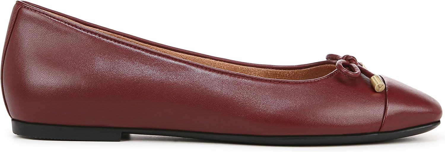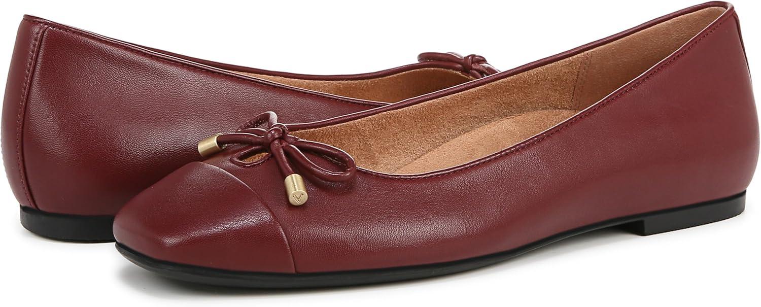 A contemporary ballet silhouette makes Klara a top choice for classic daily wear with its modern square toe, bow detail, and removable supportive orthotic. Designed with exclusive alignment technology to balance the whole you. Premium upper materials. Durable synthetic outsole designed to withstand everyday wear. Removable lightweight EVA insert. Built-in VIO MOTION Technology footbed featuring contoured arch support, with shock-absorbing cushioning, deep heel cup to provide stability, and forefoot flexibility. Vionic flats include full underfoot contact to reduce pressure with every step. Helps alleviate heel pain caused by plantar fasciitis or achilles tendonitis. It's recommended to wear your new pair for a few hours to allow your feet to adapt to the new support. .75 inch(es) heel height. Imported.